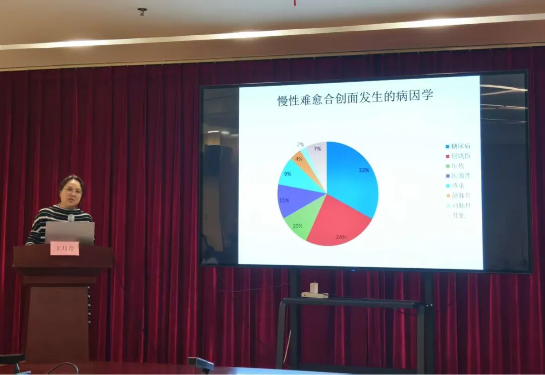 漯河市護(hù)理學(xué)會傷口造口失禁專業(yè)委員會委員、漯河市中醫(yī)院護(hù)理部主任郭書娟講述了《影響傷口愈合的因素》,她圍繞“傷口愈合”形成完整邏輯鏈,先講述愈合機(jī)制、再析影響因素、最后用案例落地,兼具理論性與臨床指導(dǎo)性。