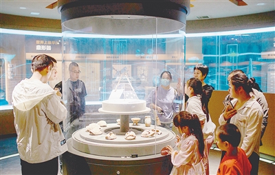國慶節期間,游客在賈湖博物館參觀。(資料圖片)記者 楊 光 攝