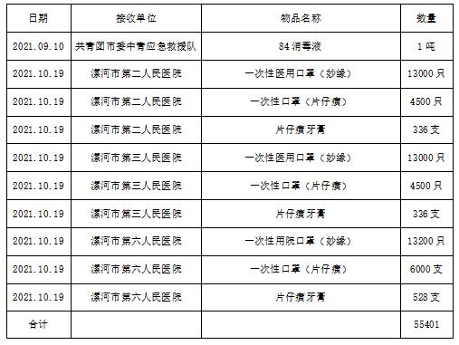 截止到10月19日20時,漯河市新冠肺炎疫情防控指揮部累計收到社會捐贈款物價值13,661,498.4元,其中捐贈物資價值5,575,623.88元,現將接受社會捐贈款物支出分配情況公示如下: