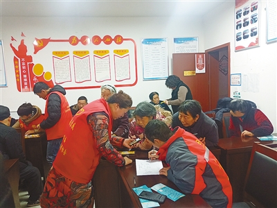 12月6日,漯河沙澧社工中心和市二院的志愿者走進郾城區龍塔街道華山社區,為老人免費發放黃手環。