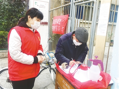 付明云說到做到。131號院有兩位從外地回來的居民,需要居家隔離,付明云在執勤之余,承擔起為他們采購物品、清理垃圾、指導他們自我檢測身體、疏導情緒的工作。