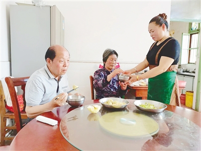 趙冬麗給婆婆盛飯。