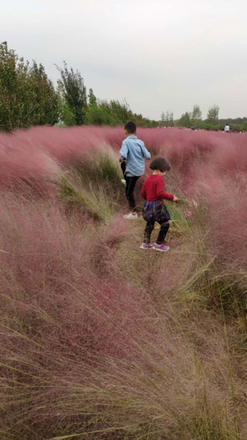 網紅粉黛亂子草進入盛開期,吸引到眾多游人來打卡。為拍出來的照片好看,一些游客鉆進花海取景,硬生生踩出多條小路,大片粉黛亂子草因此枯死,在此提醒大家記得文明出游。