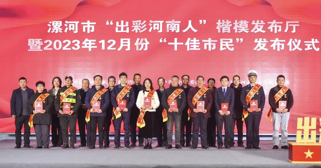 宋俊洪、王彥輝、付秀虹、李富亭、張強、王小平、國網漯河供電公司帶電作業班、朱少華、張存良、孫玉枝被評為2023年12月份“十佳市民”。往期“十佳市民”代表與有關領導作為頒獎嘉賓,為12月份“十佳市民”頒獎。